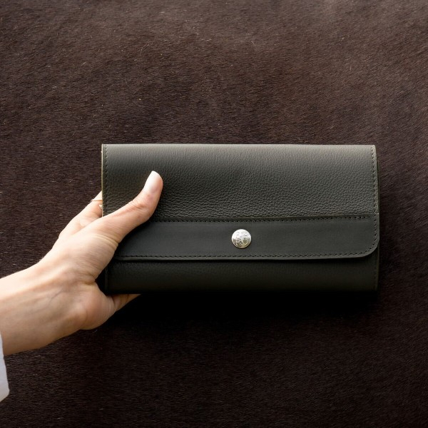 Compagnon en cuir ELGEA CèdreDimensions : 19,5 x 10,5 x 2,5 cm(Longueur x Hauteur x Largeur)– 1 compartiment zippé– 3 poches plaquées– 6 emplacements cartes– Fermeture bouton pression– Clou de selle ERRO
