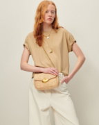 Sac chaîne en textile matelassé à deux compartiments. Fermoir magnétique, développement propre à Sessùn.