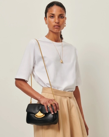 Sac chaîne en cuir d'agneau matelassé à trois compartiments. Fermoir magnétique, développement propre à Sessùn.Trois compartiments intérieurs dont une poche plaquéeLongueur totale chaîne : 106 cmFermeture par un fermoir magnétiqueMétallerie finition doréeDoublure en cotonLivré avec son pochon de protection en cotonLogo embossé à chaud sur l'arrière du sacDimensions : 13 x 20 x 7 cmPoids : 430 g