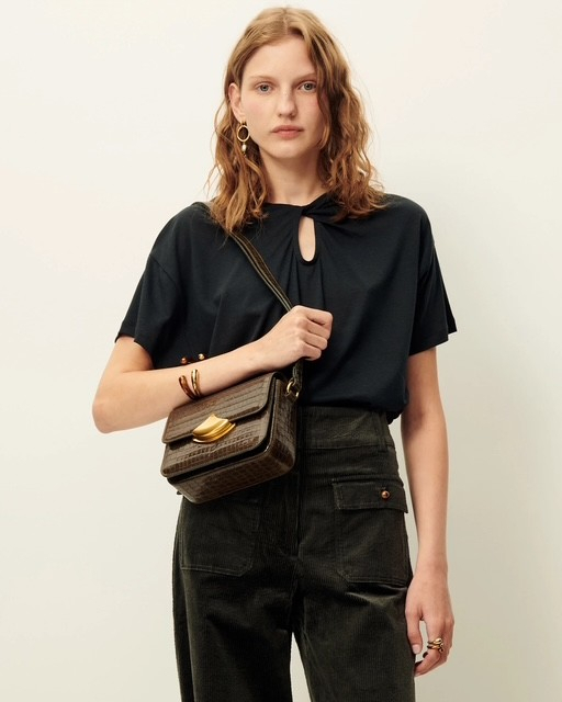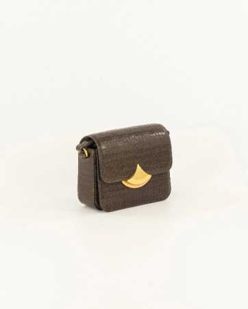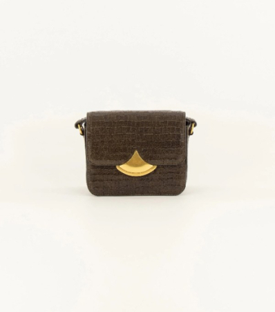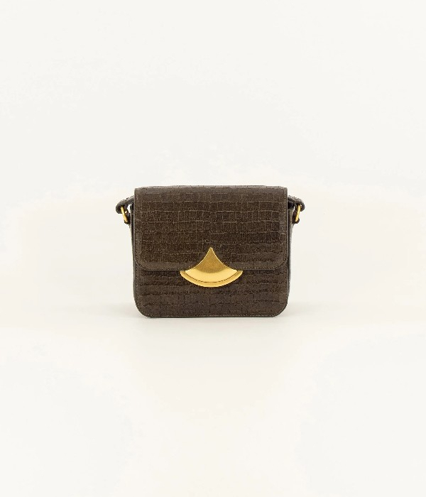 Petit sac boîte à deux compartiments en cuir de vache imprimé façon crocodile avec fermoir magnétique, développement propre à Sessùn.Deux compartiments intérieurs dont une poche plaquéeLongueur totale bandoulière :- Porté court : 80 cm- Porté long : 110 cmFermeture par un fermoir magnétiqueMétallerie finition doréeDoublure en CotonLivré avec son pochon de protection en CotonLogo embossé à chaud sur l'arrière du sacCompatible avec un téléphone de 6,5 poucesDimensions : 12,5 x 18 x 6 cmPoids : 480 g