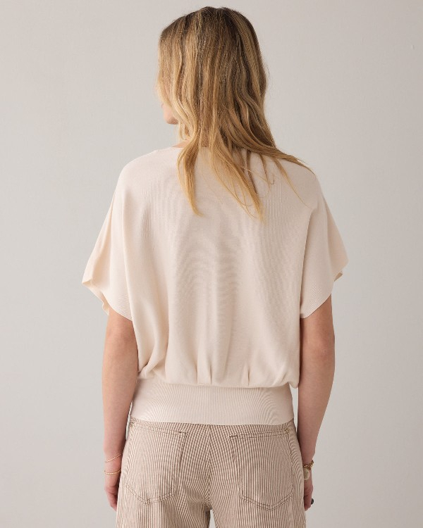 Top en maille circulaire ultra-douce et sans coutures, orné d'un délicat point côtelé. Sa coupe courte arrive aux hanches et ses manches flatteuses s'arrêtent juste au-dessus du bras.• Maille circulaire sans coutures• Point côtelé délicat• Manches courtes flatteuses• Ourlet plissé72 % viscose, 28 % polyester