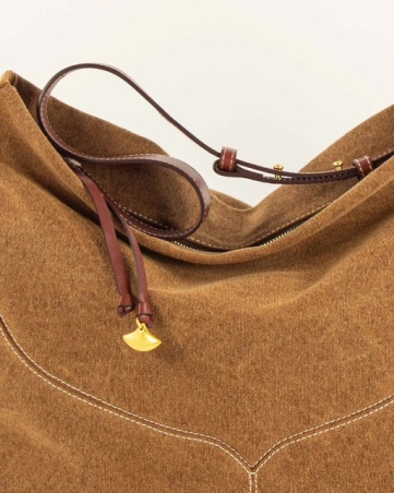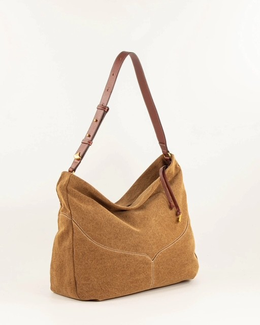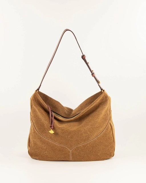 Grand sac hobo souple en canvas de coton délavé, avec détails de surpiqûres. Anse en cuir de vache. Pièce métallique décorative sur la bandoulière, développement exclusif Sessùn.• Large compartiment central avec poche plaquée• Longueur totale bandoulière :- Porté au plus court : 50 cm- Porté au plus long : 65 cm• Fermeture par un zip métallique• Métallerie finition dorée• Doublure en coton• Livré avec son pochon de protection en coton• Dimensions 35 x 40 x 10 cm• Poids : 493g