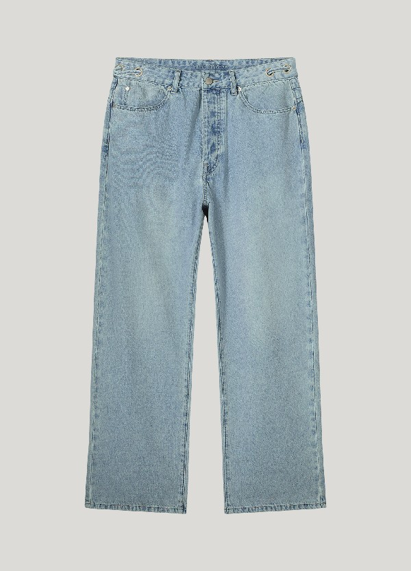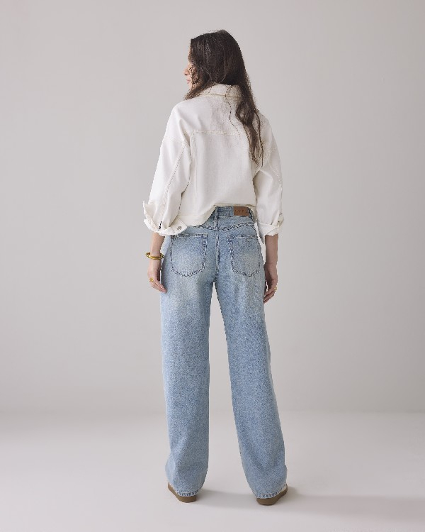 Ce jean est confectionné en denim sergé confortable et présente une coupe droite. Le pantalon est doté d'un délavage vintage et possède de longues jambes droites.