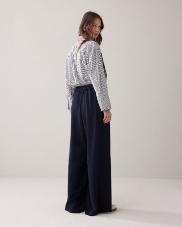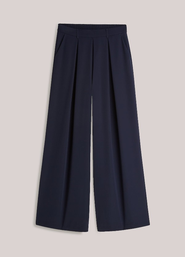 Pantalon en tissu fluide, orné de larges plis creux et de jambes ultra-larges pour une silhouette légère et aérienne. Ce pantalon possède une taille mi-haute et des poches latérales.• Longueur d'entrejambe : env. 82 cm• Taille mi-haute• Tissu fluide• Ceinture élastiquée au dos• Poches latérales100% polyester