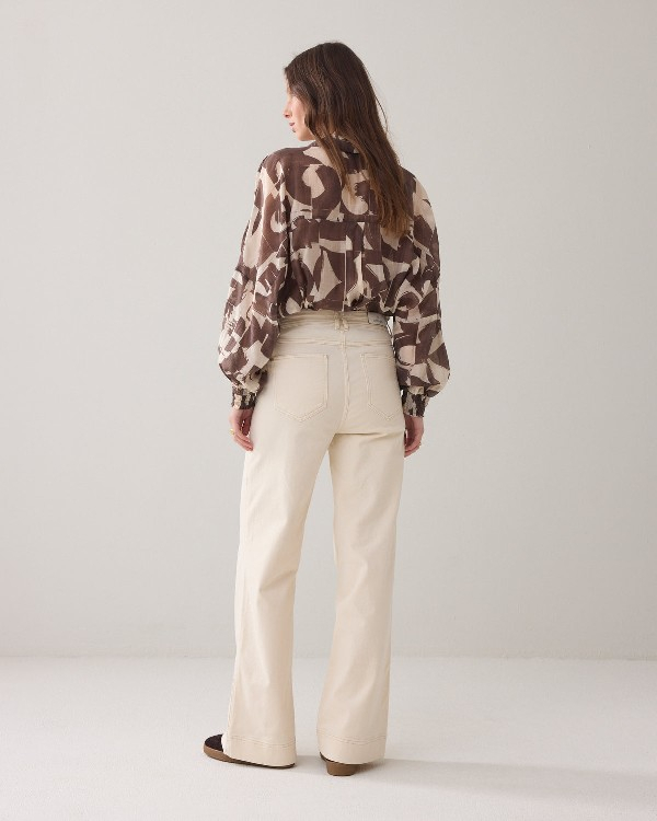 Pantalon évasé taille haute, inspiré des années 70. La coupe est ajustée aux hanches et aux cuisses, et s'évase à partir du genou. Il est doté de deux fausses poches à l'avant et de poches plaquées à l'arrière.• Tissu stretch confortable• Taille haute• Coupe évasée, esprit années 70• Fausses poches à l'avant et poches plaquées à l'arrière98 % coton, 2 % élasthanne