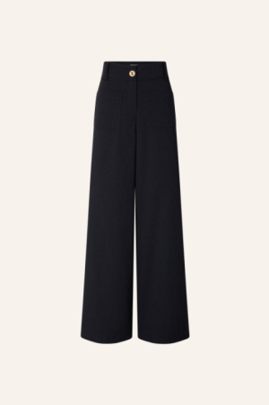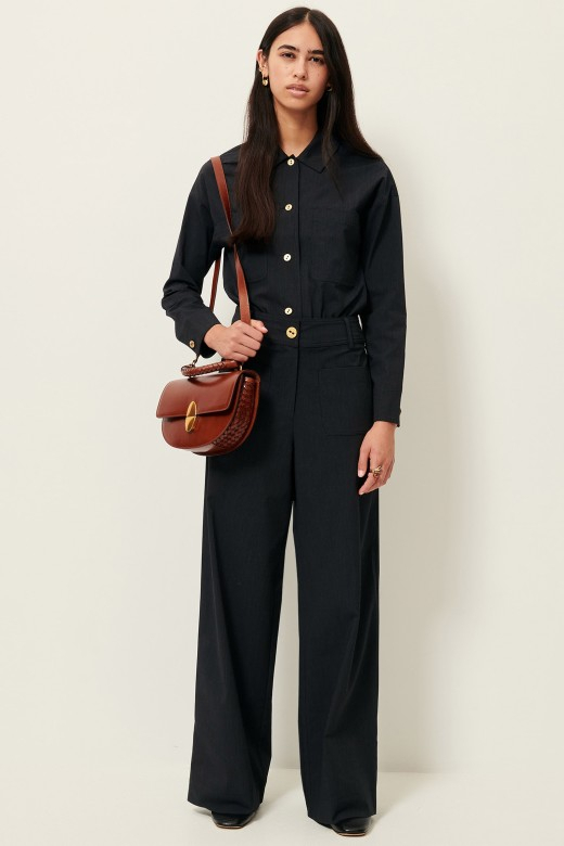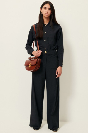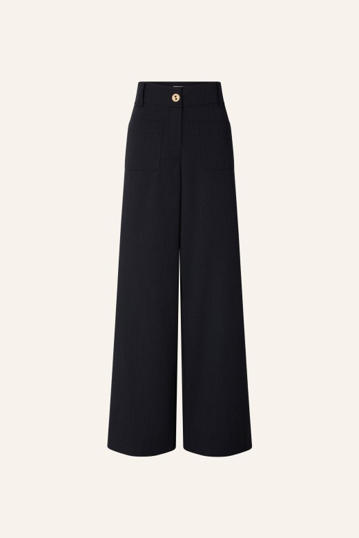 Pantalon droit ample, taille haute, en twill mono stretch tissé en Bulgarie, à fines rayures exclusives Sessùn.Le polyester utilisé en complément de la viscose pour la confection de ce produit est recyclé et labellisé GRS, cela permet de réduire son impact environnemental et de s'intégrer dans une démarche plus large de préservation des ressources.Ce produit est composé de viscose issue de sources de bois renouvelables gérées durablement.