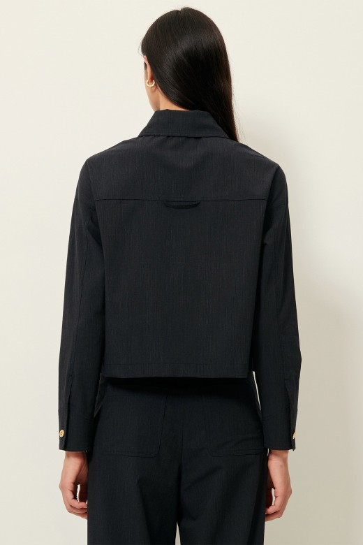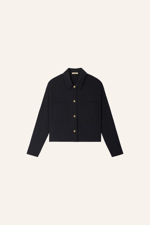 Fermeture boutonnée.Emmanchures basses.Manches longues.Poches plaquées surpiquées sur la poitrine.Empiècement au dos.64% Polyester 33% Viscose 3% ÉlasthanneMade in Tunisia