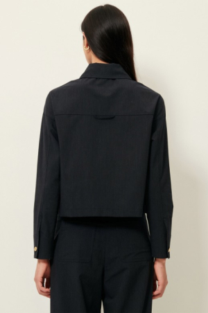 Surchemise à poches plaquées en twill serré mono stretch tissé en Bulgarie, à fines rayures zéphyr, exclusives Sessùn.Ce produit est composé de viscose issue de sources de bois renouvelables gérées durablement.Le polyester utilisé en complément de la viscose pour la confection de ce produit est recyclé et labellisé GRS, cela permet de réduire son impact environnemental et de s'intégrer dans une démarche plus large de préservation des ressources.