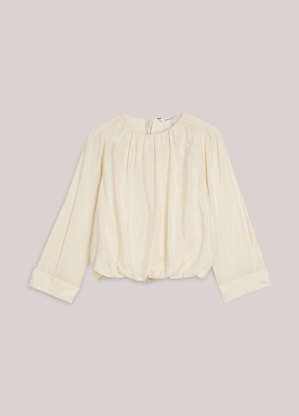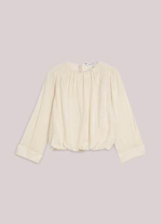 Ce haut léger et doublé présente un drapé souple. Il est doté d'une encolure plissée, d'un ourlet froncé, de manches bouffantes à larges poignets et d'un cordon de serrage au col.• Corps doublé• Coupe ample• Encolure et ourlet froncés• Brillant52 % viscose, 48 % coton