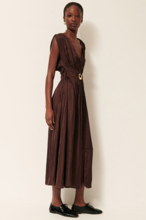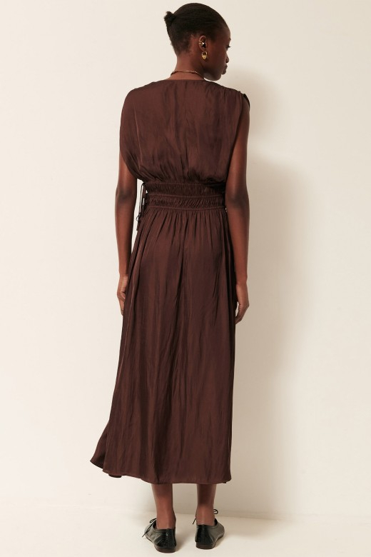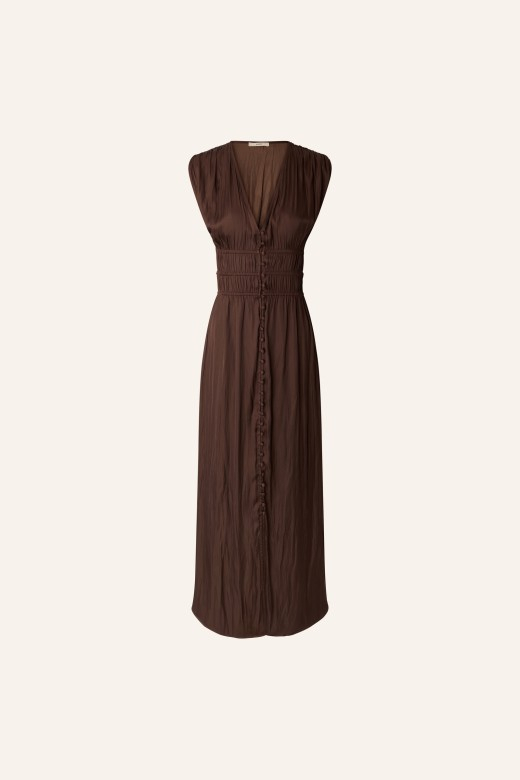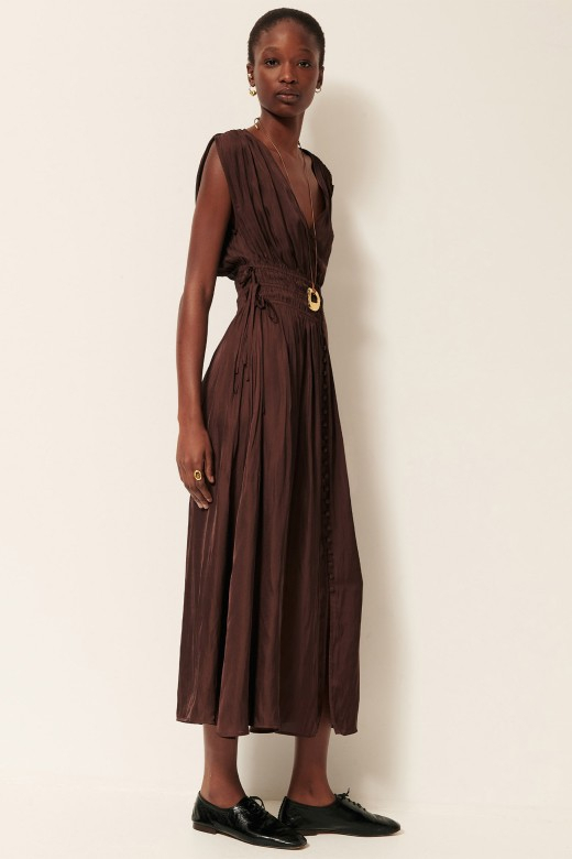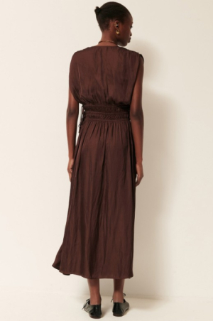Robe longue boutonnée et smockée, en satin fluide légèrement créponné.Le polyester utilisé pour la confection de ce produit est recyclé et labellisé GRS, cela permet de réduire son impact environnemental et de s'intégrer dans une démarche plus large de préservation des ressources.