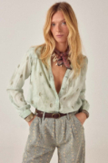 Chemisier à manches longues et col en coton tie-dye orné de petits motifs. Fermeture boutonnée sur le devant, col classique. Le fond tie-dye se fond dans un corail saumoné, une couleur chaude et minérale, lumineuse. Les petits motifs adoucissent et équilibrent l'intensité.Le corail Rani est un corail chaud aux pigments superposés, vibrant et harmonieux. La technique de teinture tie-dye artisanale rend chaque pièce unique, de légères variations de couleur étant possibles. Coton doux et respirant.
