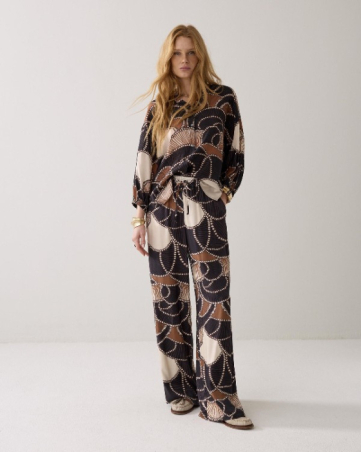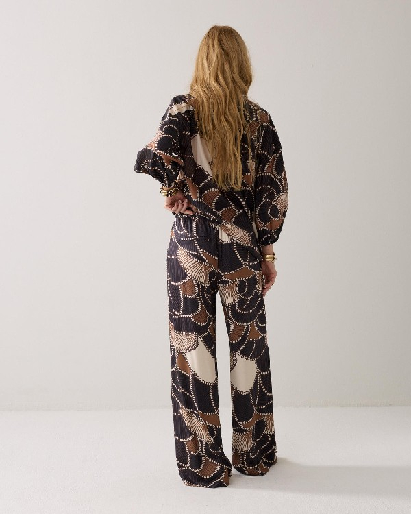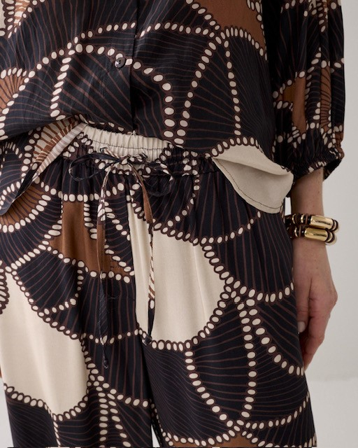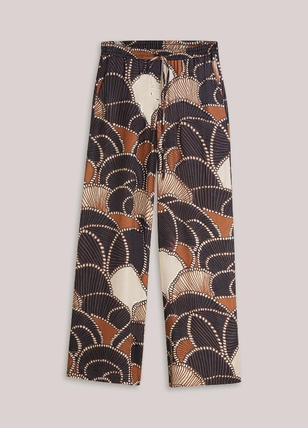 Pantalon en satin sergé fluide au léger brillant, à la coupe décontractée et ample. Ce pantalon présente des jambes larges, une taille élastiquée avec cordon de serrage et des poches passepoilées.• Satin sergé• Jambes larges et fluides• Taille élastiquée avec cordon de serrage• Imprimé intégral