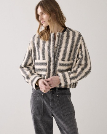 Veste courte réversible en coton rayé avec doublure contrastante. Elle présente une taille élastiquée, des manches droites et larges, ainsi que des poches plaquées. Fermeture par boutons-pression et poignets larges.• Réversible• Coupe courte• Manches droites et larges avec poignets