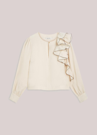 Un top fluide en lin mélangé, à la coupe droite et classique. Ce top présente un volant asymétrique devant et dos, orné d'une bordure contrastante.• Lin mélangé• Volant asymétrique avec bordure contrastante• Encolure ronde fendue et boutonnée• Fentes latérales