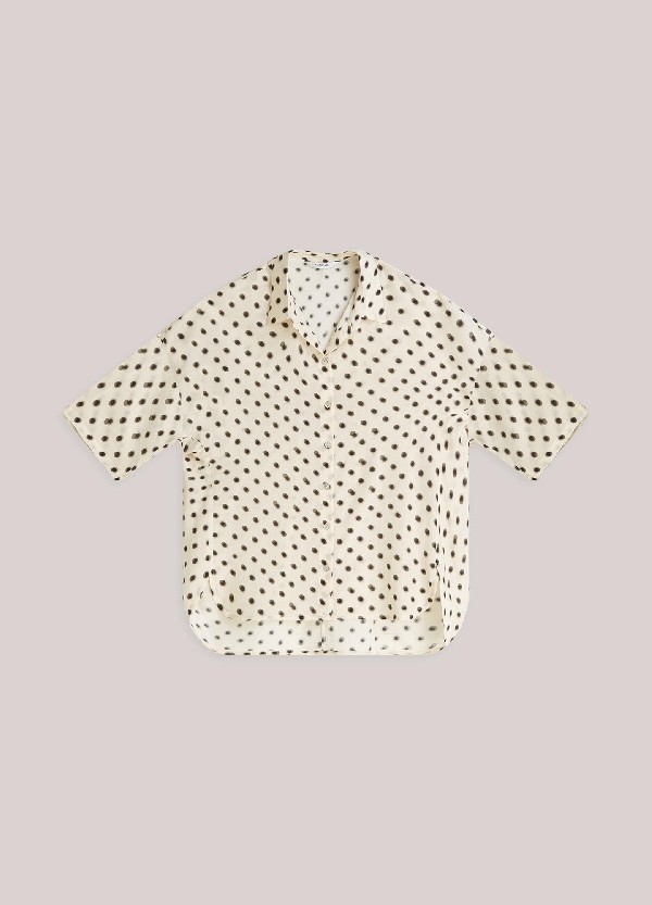 Blouse en viscose-coton léger à imprimé pois ludique. L'empiècement arrondi se prolonge sur le devant, créant un effet cape bouffant dans le dos, tandis que le devant est ajusté.• Fentes sur le devant• Manches droites trois-quarts• Épaules tombantes• Fermeture boutonnée